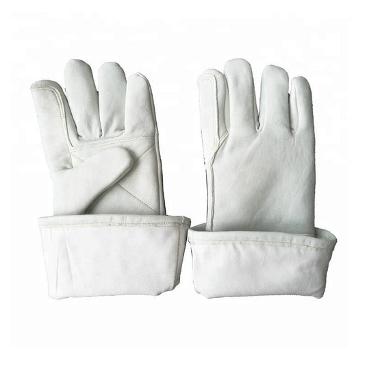 White Leather Industrial Abrasion Welding Long Gloves